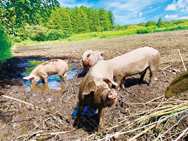 一般的な養豚の飼育環境では病気予防のため、エサを与える際に抗生物質の投与が定期的に行われます。朝霧高原放牧豚では基本、薬は与えません。豚の健康を一番に考え、免疫力が高くなる飼育を心がけています。